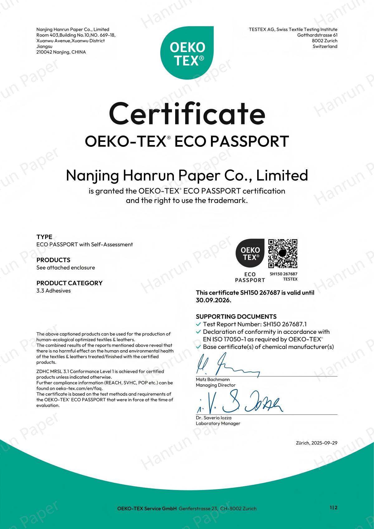 All upgraded Hanrun Paper DTF powders have passed OEKO-TEX Standard 100 certification, verifying that they are non-toxic, skin-friendly, and free from harmful substances.